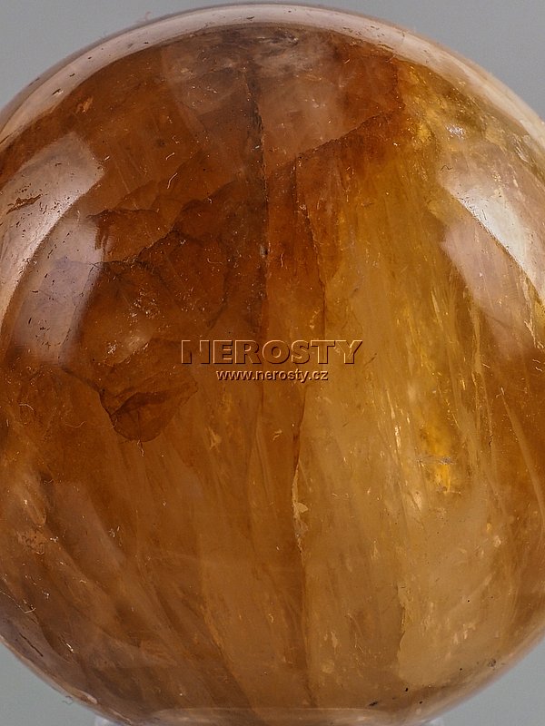 Nestejnoměrně žlutě až intenzivně oranžově probarvená koule z křemene zbarveného železem. |