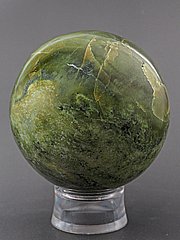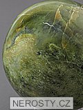 Koule ze zeleného hadcového opálu.Opál tvoří podstatnou část materiálu z něhož je koule vyrobena.