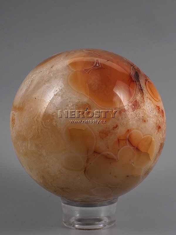 Karneolová koule vyrobená z pečlivě vybraného kusu drahého kamene. |