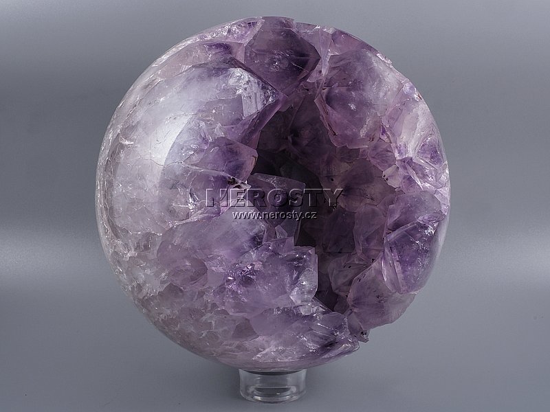 Otevřená koule vyplněná krystaly ametystu vybroušená z části ametystové geody. |