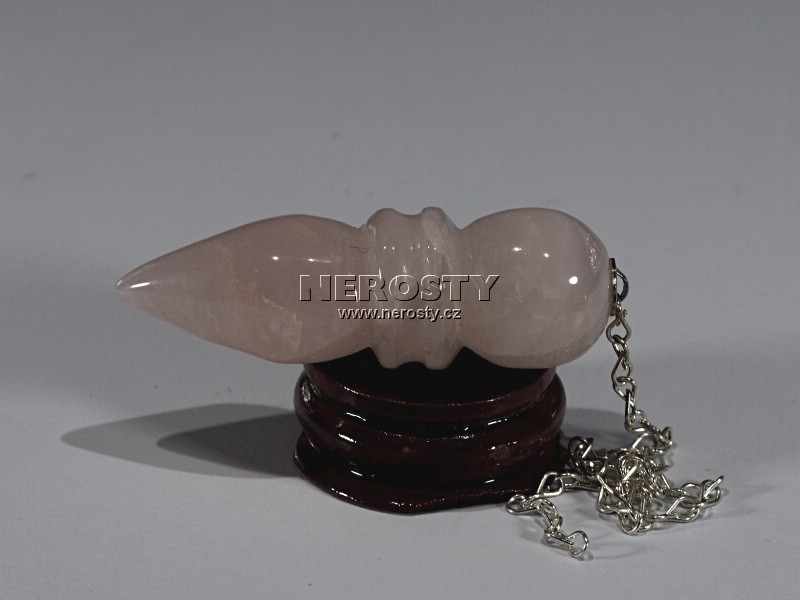 Kyvadlo z růženínu, egypský typ. Kyvadlo je zavěšeno na řetízku o délce cca 25 cm. |