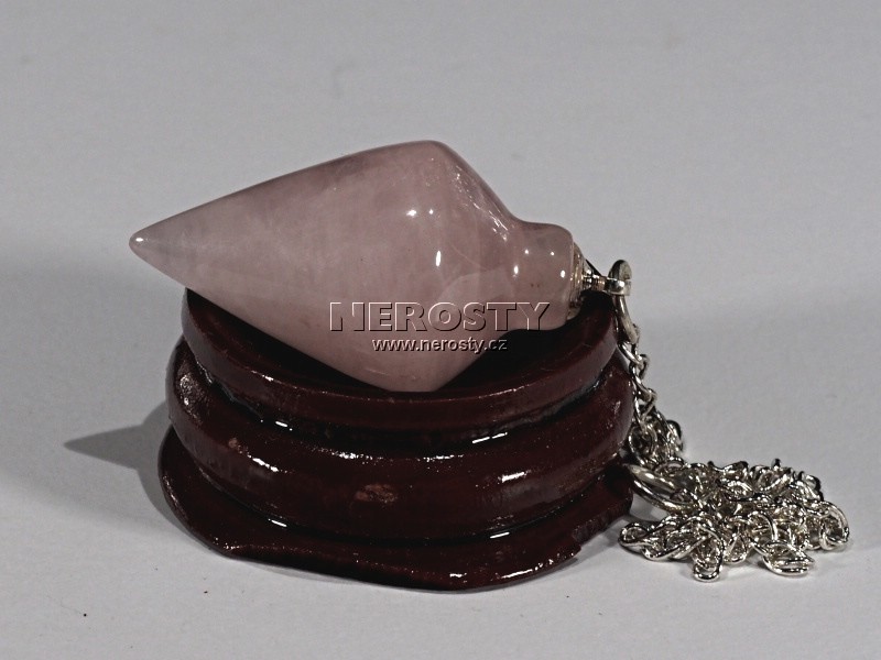 Kuželovité růženínové kyvadlo. Kyvadlo je zavěšeno na řetízku o délce cca 25 cm. |