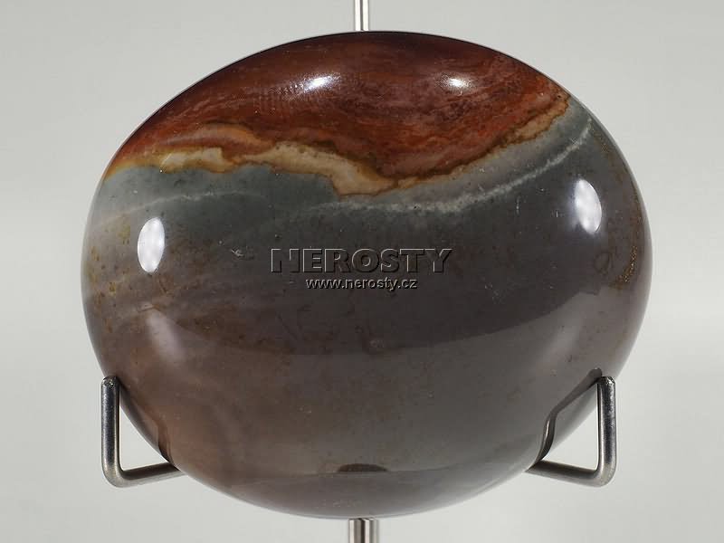 Valoun z pestře zbarveného jaspisu – mookaitu. |