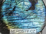 Valoun z labradoritu s výraznou modrou a zlatožlutou barvoměnou. |