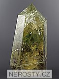 Špice ve tvaru krystalu vybroušená z nepravého citrínu který byl původně záhnědou.V krystalu jsou zarostlé rutilové jehlice a zelený chlorit který dává krystalu při určitém natočení nazelenalou barvu..