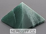 Pyramida ze zeleného nestejnoměrně probarveného avanturínu s výraznou strukturou kamene. |