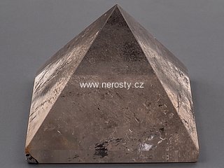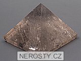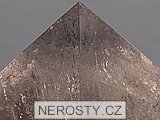 Pyramida z nestejnoměrně probarvené čiré až průhledné záhnědy. |