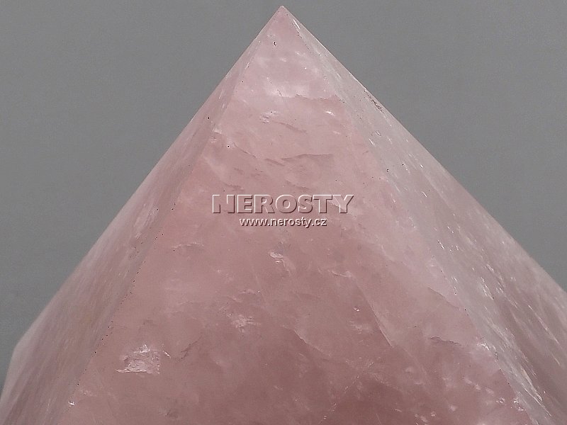 Pyramida, vybroušená z kusu nestejnoměrně barevného jakostního růženínu. |