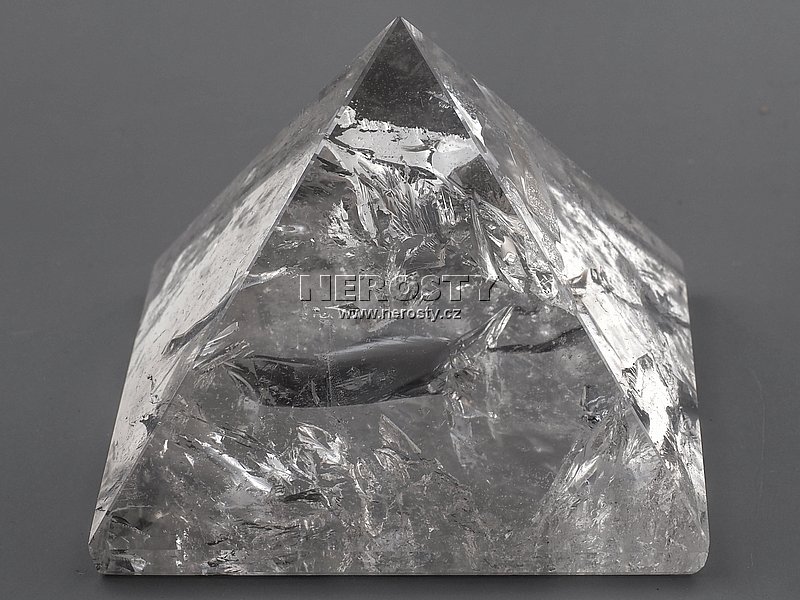 Pyramida z kusu ledově čirého až průhledného křišťálu s minimem růstových poruch. |