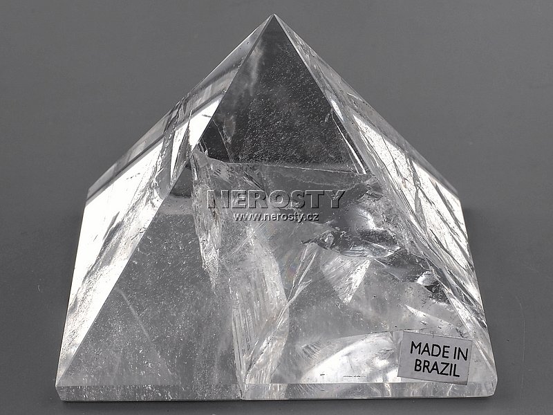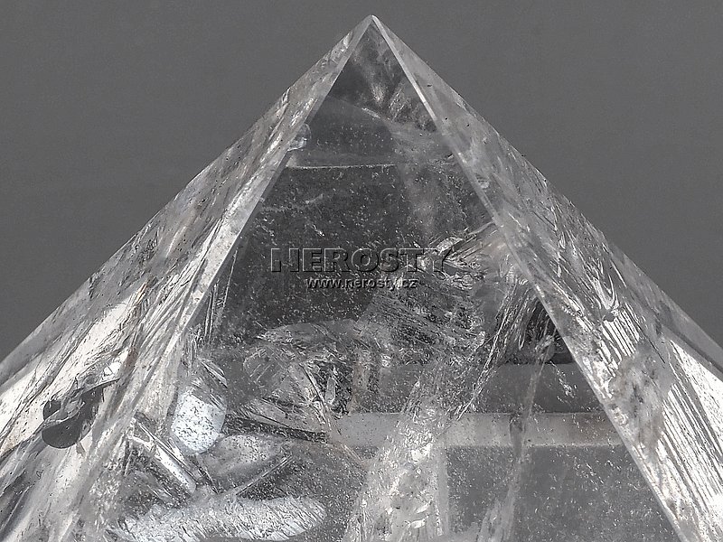 Pyramida z kusu ledově čirého až průhledného křišťálu s minimem růstových poruch. |