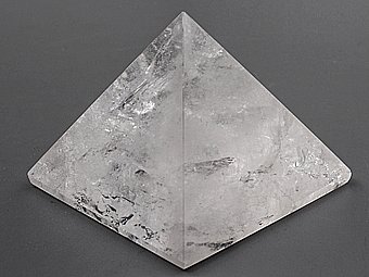 Pyramida z kusu místy mléčně zakaleného křišťálu s obvyklým množstvím růstových poruch. |
