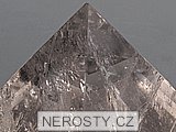 Pyramida z nestejnoměrně probarvené čiré až průhledné záhnědy. |