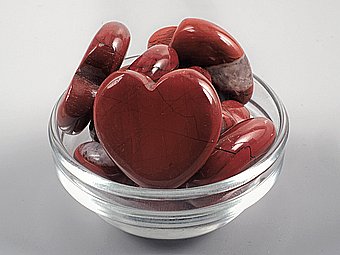 Malé srdce vyrobené z tmavě červeného jaspisu.Fotografováno v misce o průměru 5,5 cm.