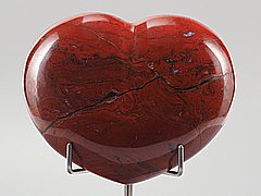 Srdce z dobře vybarveného červeného jaspisu s tenkou a vyhojenou přírodní prasklinkou. |