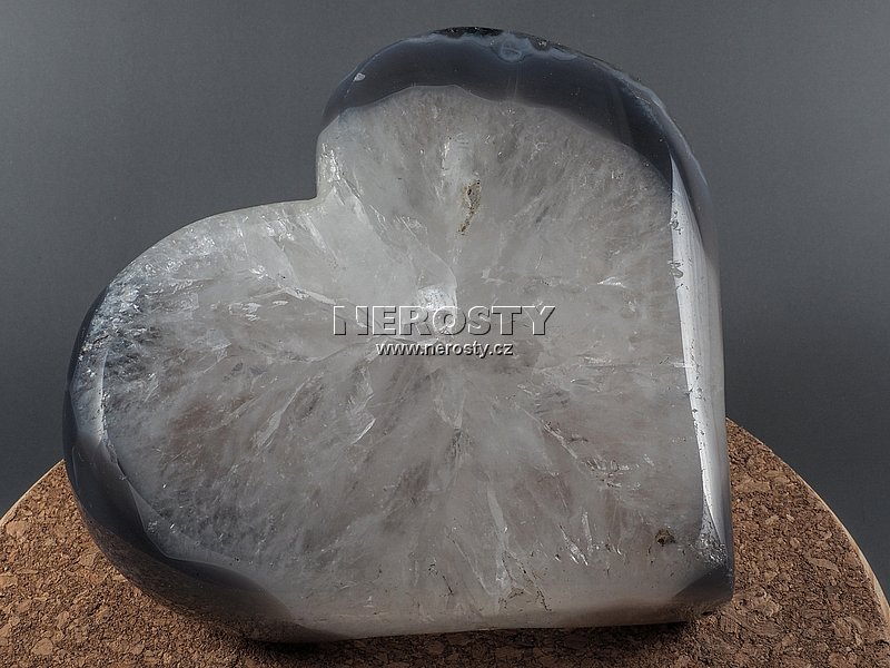 Velké dekorativní ploché průsvitné křišťálové srdce v kombinaci se šedobéžovým chalcedonem. |