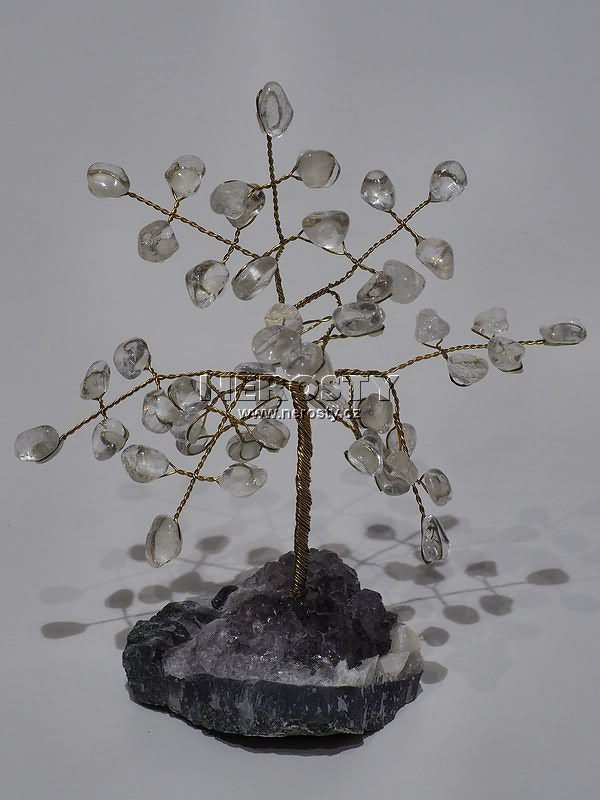 Stromeček štěstí. Kmen tvoří zkroucené drátky, podložkou je ametyst. Stromeček lze libovolně natvarovat, uvedená výška je pouze orientační. |