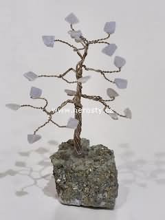 Stromeček štěstí. Kmen tvoří drátky, podložkou je pyrit. Stromeček lze libovolně natvarovat, uvedené rozměry jsou pouze orientační. |