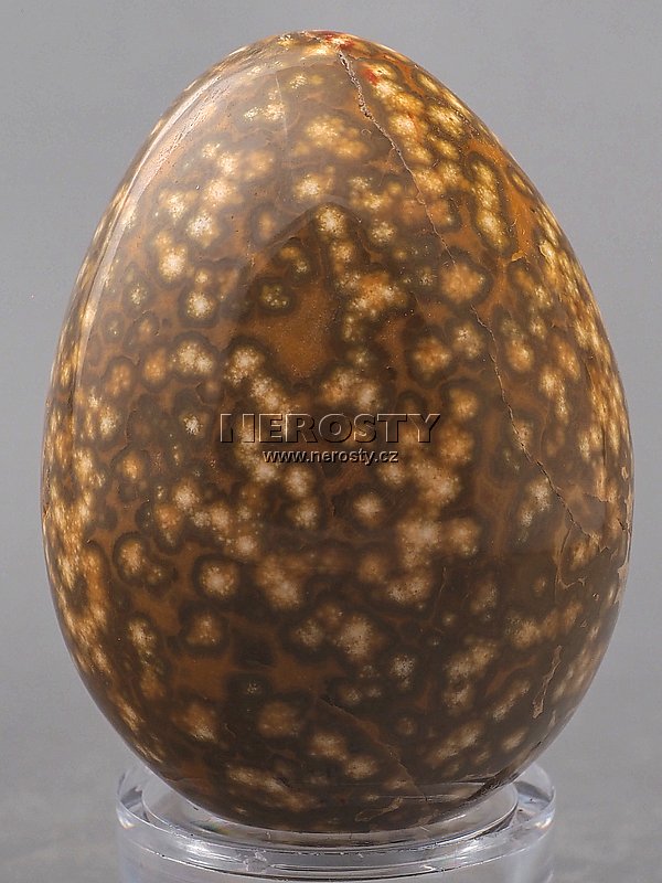 Vejce vyrobené z pečlivě vybraného kusu skvrnitého jaspisu který se označuje jako oceán jaspis. |