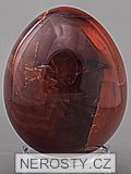 Vejce z dobře vybarveného pestrého karneolu s výraznou kresbou. |