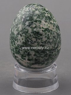 Zeleně kropenaté vejce je zhotoveno z kamene který je označován jako stromový achát. |