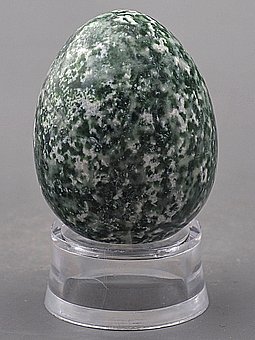 Zeleně kropenaté vejce je zhotoveno z kamene který je označován jako stromový achát. |
