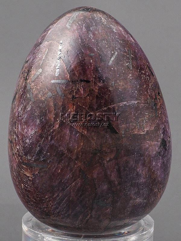 Vejce z nedrahokamového krystalu rubínu s výraznou vnitřní strukturou. |
