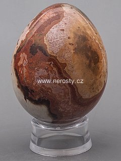 Vejce z pestrobarevného jaspisu – mookaitu s velmi zajímavou kresbou. |