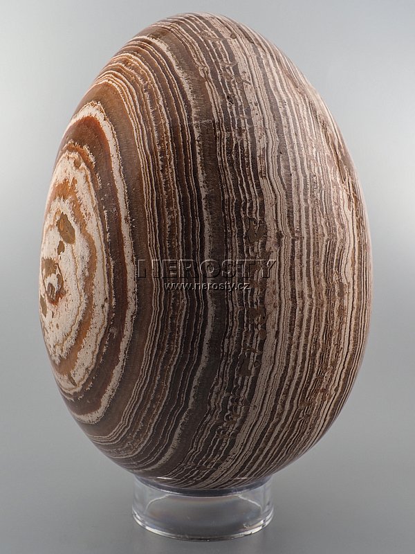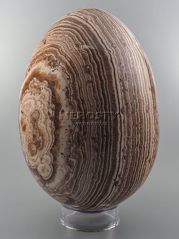 Ručně broušené a leštěné vejce z aragonitu.Toto leštěné vejce je dekorativní předmět vyrobený z přírodního kamene, který vyniká svou elegancí a jedinečnou kresbou. Každý kus je originál díky neopakovatelné dřevo připomínající struktuře kamene. Povrch je pečlivě vyhlazen a vyleštěn do vysokého lesku, což zvýrazňuje hloubku a krásu kamene.