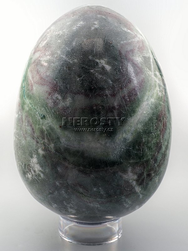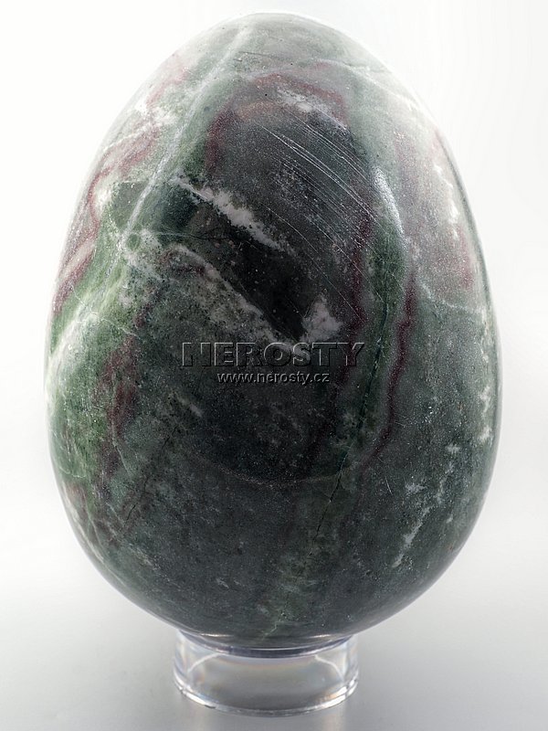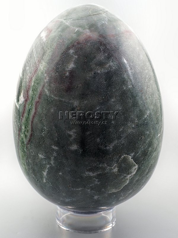 Ručně broušené a leštěné vejce ze zeleno-červeného mramoru.Toto leštěné vejce je dekorativní předmět vyrobený z přírodního kamene, který vyniká svou elegancí a jedinečnou kresbou. Každý kus je originál díky neopakovatelné struktuře kamene. Povrch je pečlivě vyhlazen a vyleštěn do vysokého lesku, což zvýrazňuje krásu kamene.