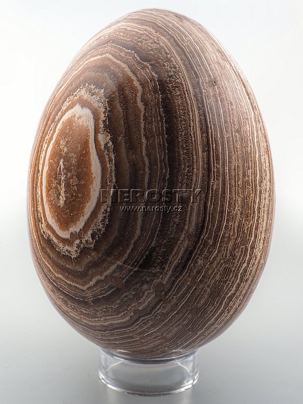 Ručně broušené a leštěné vejce z aragonitu.Toto leštěné vejce je dekorativní předmět vyrobený z přírodního kamene, který vyniká svou elegancí a jedinečnou kresbou. Každý kus je originál díky neopakovatelné struktuře kamene. Povrch je pečlivě vyhlazen a vyleštěn do vysokého lesku, což zvýrazňuje krásu kamene.