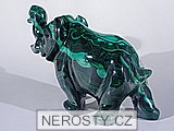 Slon. Drobná plastika je vyrobena z dobrého kusu malachitu s pěknou kresbou. |