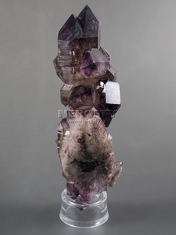 Dlouhý a oboustranně ukončený multikrystal pestrobarevného křemene, žezlo, holubník.Na dlouhém křemenné krystalu tvořícím pomyslnou nohu holubníku nebo dřík žezla jsou narostlé další krystaly jejichž barva přechází od ametystových po záhnědové odstíny. Stěny těchto do všech směrů narostlých krystalů jsou lesklé a jejich tělo dobře průsvitné až průhledné.