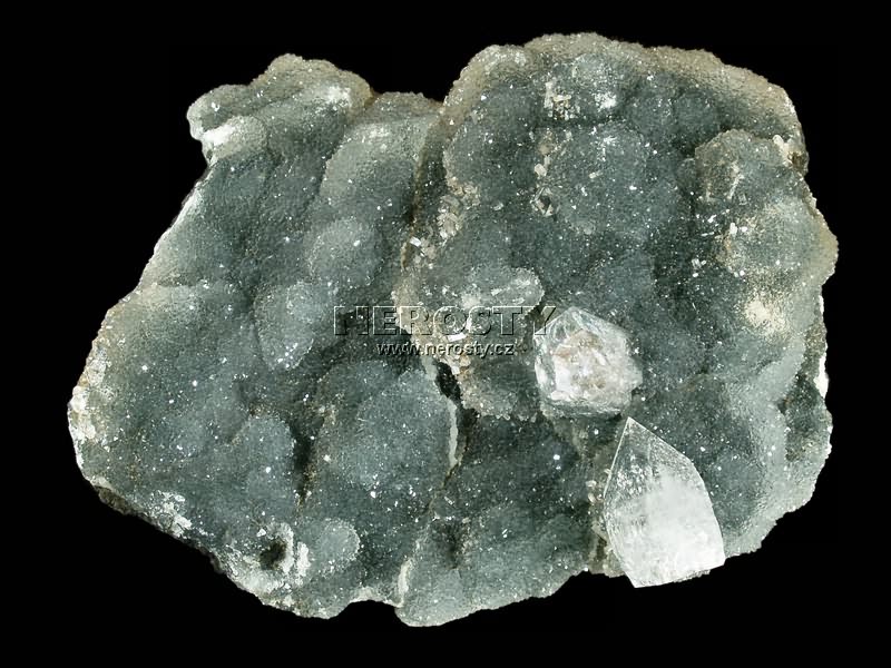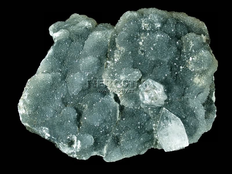 Krystaly apofylitu na chalcedonu. |