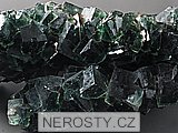 Relativně plochá avšak prostorově členitá ukázka tmavě zeleného fluoritu.Drúza smaragdově zelených, částečně kostrovitých a dobře průsvitných krystalů fluoritu. Velikost krystalů do 12 mm.