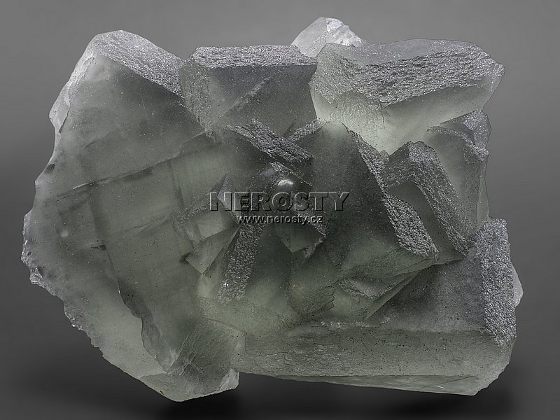 Plochá drúza zelených až šedozelených a dobře průsvitných krystalů fluoritu.Krystaly mají typický tvar krychle se zkosenými hranami. Největší krychle má hranu o délce 7 cm.