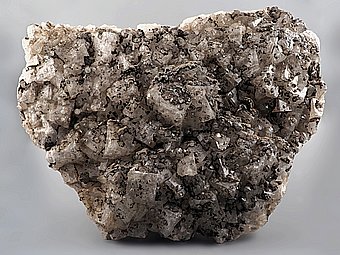 Velká drúza z čirých až mléčně zakalených krystalů fluoritu.Fluorit je místy porostlý oboustranně ukončenými krystaly křemen a drobným pyritem. Velikost fluoritových krystalů je typicky 2 cm přičemž největší krystal měří 3.5 cm. |