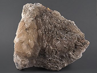 Velký dekorativní vzorek kalcitu v kombinaci s třpytivým pyritem. |