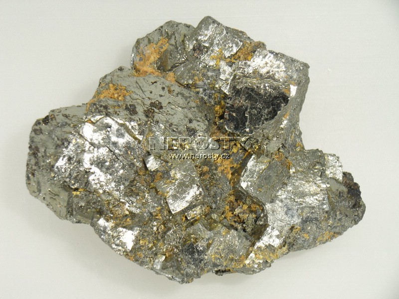 Silně lesklé pyritové krystaly. Klasická ukázka z dolů bývalé Jugoslávie. |