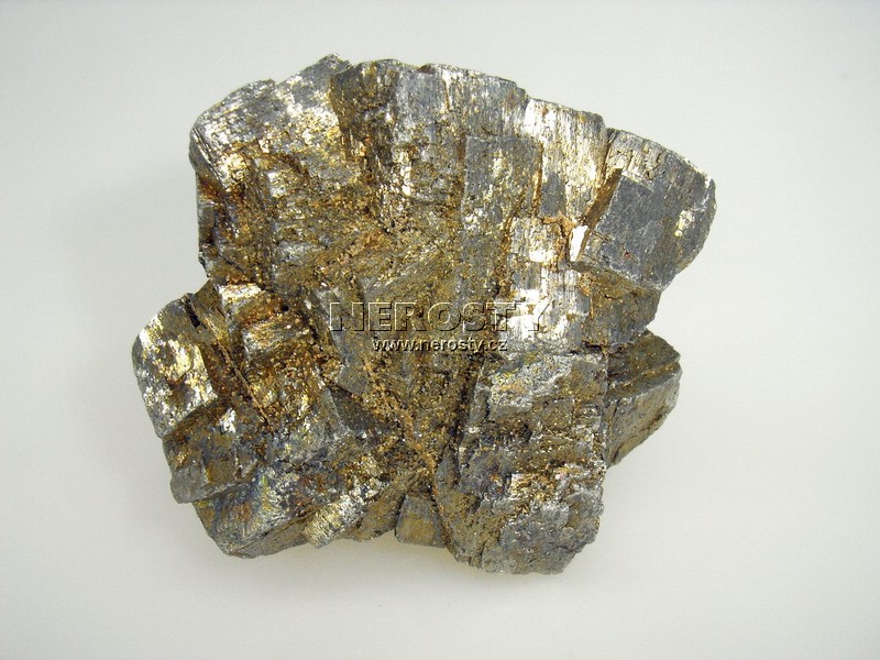 Rýhované pyritové krystaly. Volná oboustranná drůza. Klasická ukázka z dolů bývalé Jugoslávie. |