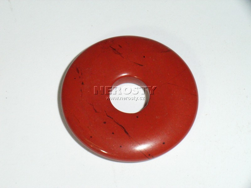 Plochý disk s otvorem o průměru 0,5cm uprostřed, vybroušený z drahého kamene. Vhodný například k nošení na kožené šňůrce. |