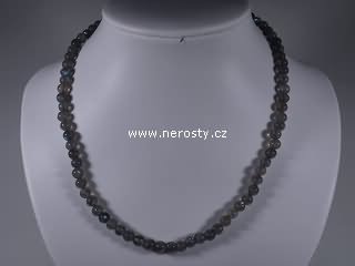 Náhrdelník z labradoritových kuliček. Průměr kuliček je cca 6 mm, náhrdelník má klasické zavírání ve zlaté barvě. |