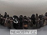 Náramek vyrobený z drobných a nestejně velkých tromlovaných kamínků tmavší záhnědy navlečených na gumičce.Univerzální velikost. Náramek je fotografován na trnu o průměru 65 mm. Vzhledem k tomu, že náramek je navlečený na pružné gumičce, je vhodný téměř pro každou ruku.