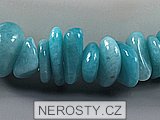Náramek je poskládaný z valounků sytě modře a modrozeleně zbarveného amazonitu.Průměr kamínků je cca 8-10 mm. Náramek je fotografován na trnu o průměru 65 mm. Vzhledem k tomu, že náramek je navlečený na pružné gumičce, je vhodný téměř pro každou ruku. Jedná se o univerzální velikost