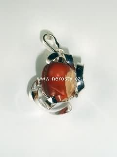Originální ruční práce. Šperk je zhotoven z obecného, galvanicky postříbřeného kovu. Ve šperku je vsazen pravý přírodní kámen. |