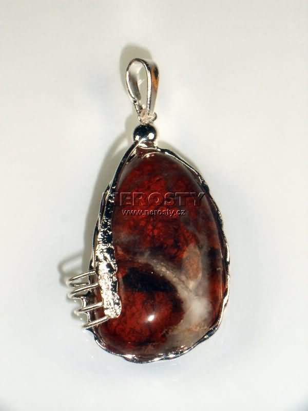 Originální ruční práce. Šperk je zhotoven z obecného, galvanicky postříbřeného kovu. Ve šperku je vsazen pravý přírodní kámen. |
