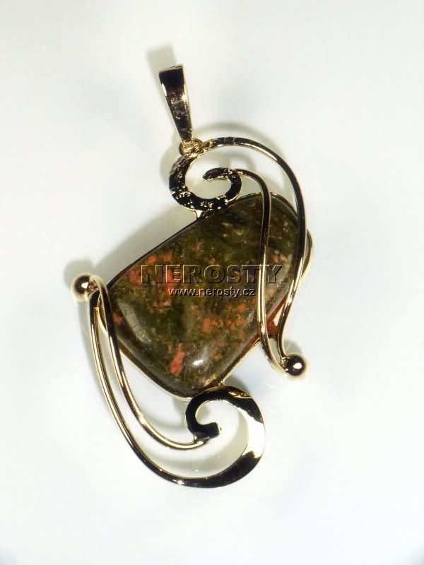 Originální ruční práce. Šperk je zhotoven z obecného, galvanicky pozlaceného kovu. Ve šperku je vsazen pravý přírodní kámen. |