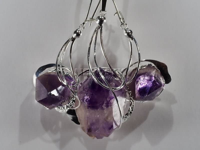 Sada šperků z neobvyklého „hodinového“ ametystu. Míry a hmotnost se vztahují k přívěsku. Hmotnost a rozměry náušnic zašleme na vyžádání. |