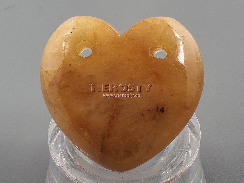 Srdce z nestejnoměrně probarveného železitého křemene se dvěma otvory na protažení šňůrky či kůžičky.Fotografováno v misce o průměru 6 cm.